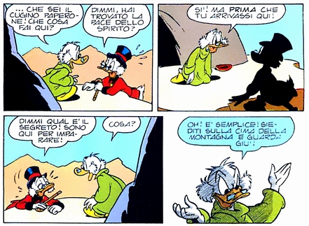 Con Paperino parte per il Tibot dove il cugino medita su una montagna.